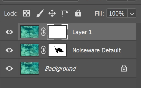 e.g. in attached screenshot, copy the layer mask selection from "Nosieware Default" layer to Layer 1.