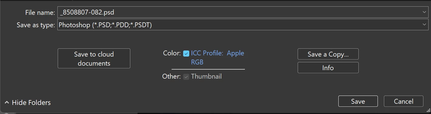 Keeps defaulting to using an ICC Profile of Apple RGB when I try to use Save As.
