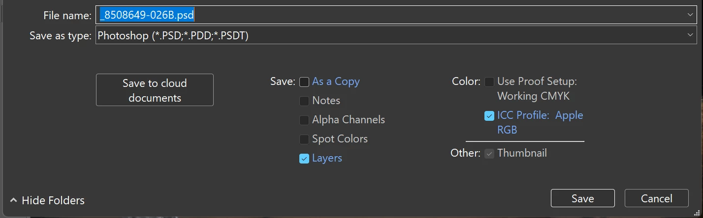 PS 26.6 keeps changing ICC Pofile From Adobe RGB to Apple RGB for Save As