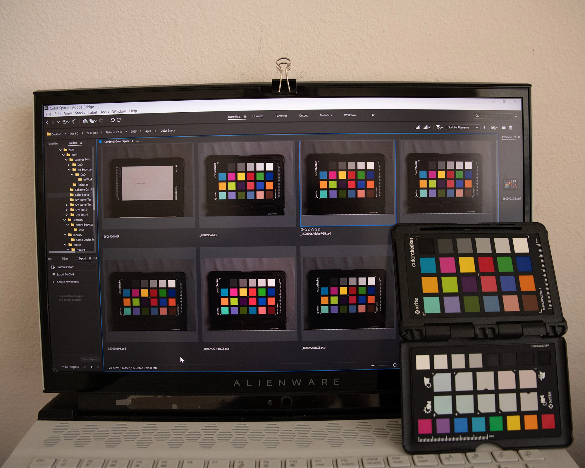 The image was shot in Adobe RGB, opened in Adobe RGB, edited in Adobe RGB or sRGB as it seems to change that property sometimes too..