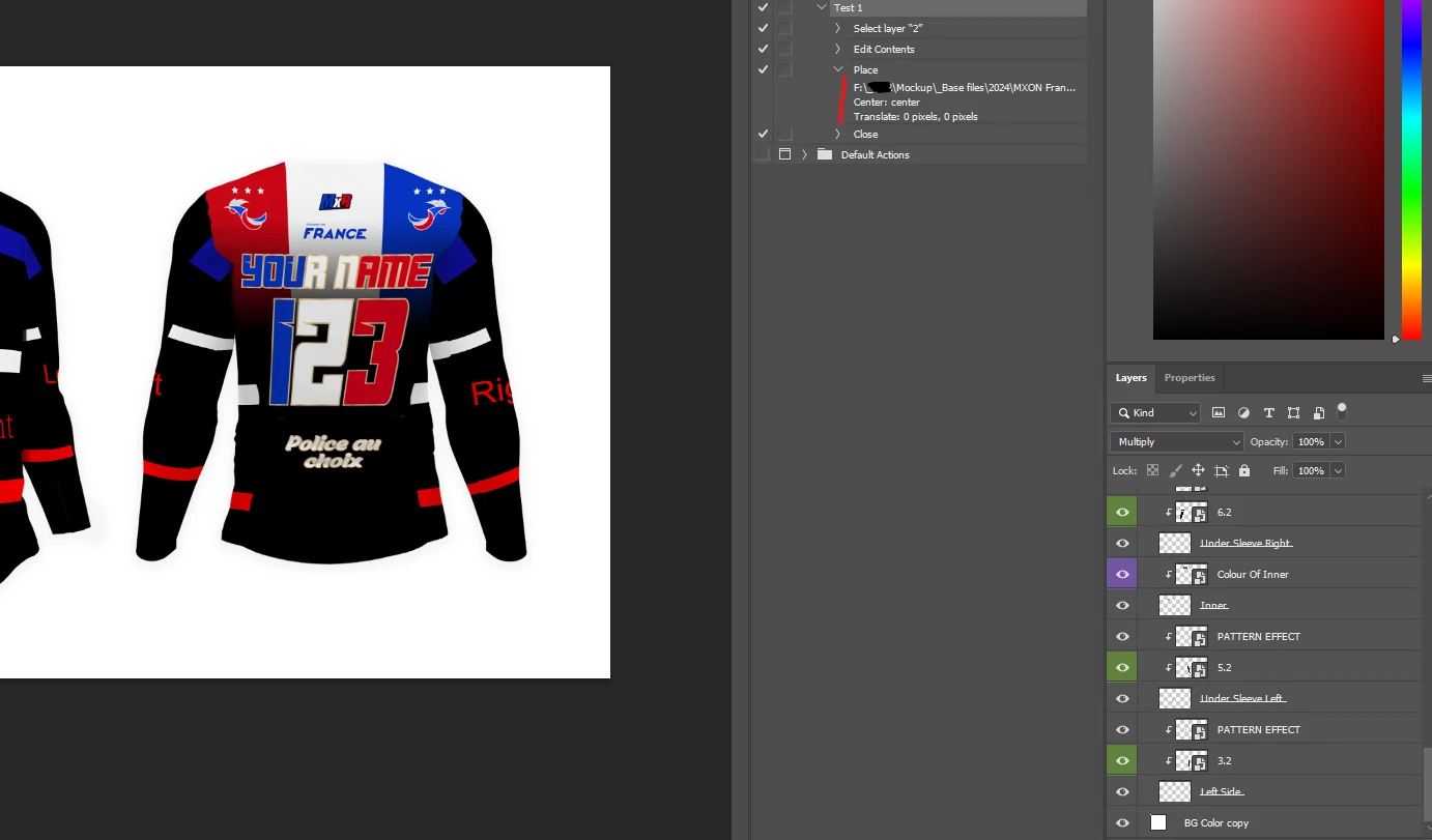 I recently hired someone to make a jersey mockup base for me. Now that the .psd file is ready and I need some help to automate it with actions.