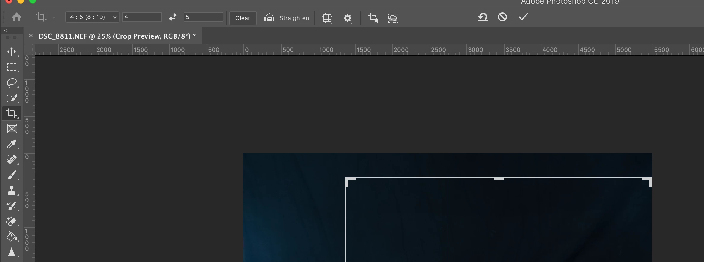 Focusing on the problem, Launched PS 2019 and opened a NEF fie. Trying to rotate and crop an image, So far so good, however I don't have the content-aware option visible in the tool bar. Tried resetting the tool - to no avail.