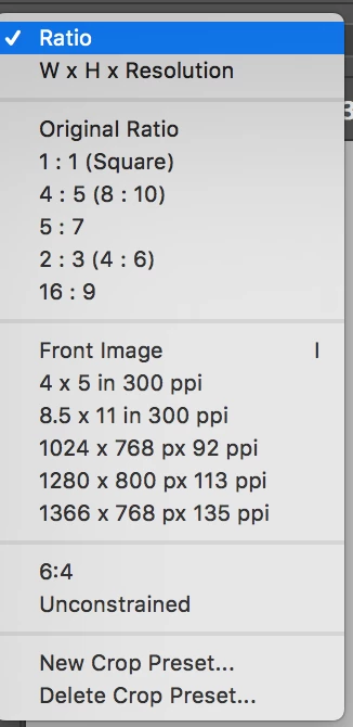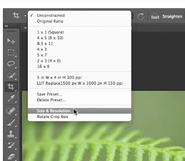 However, at about the 1 min mark, she goes into the crop pull down menu to select the Size & Resolution option, but in my version of PS CC that option isn't present.