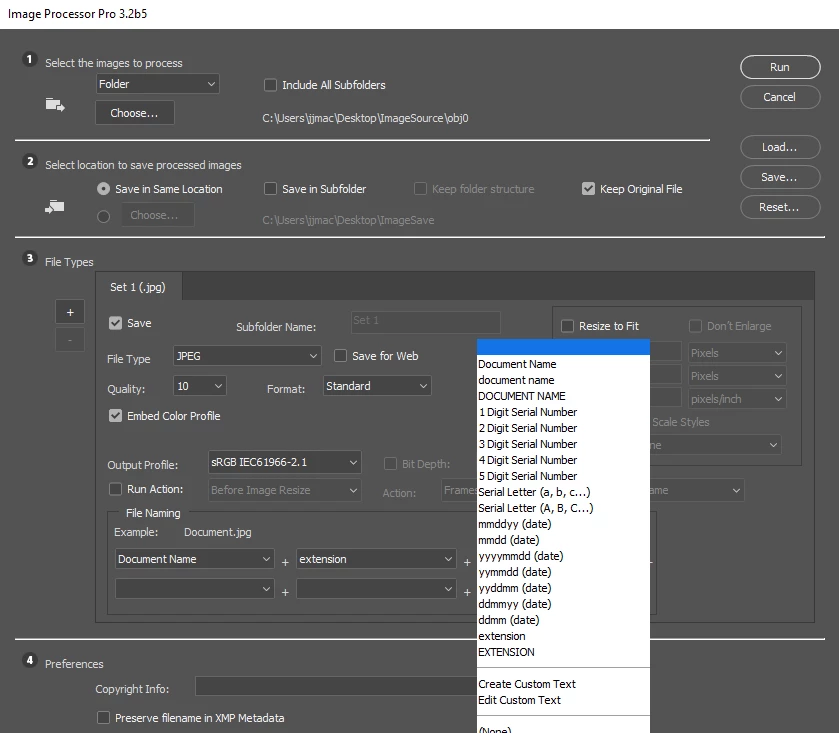 When I open that file in PS, the name appears as a huge string of numbers and letters like "97D1EF45-50C9-488C-A301-74E003CAE767_1_100_o". I run a script with image processor on the batch I have open, in order to save them to a new folder, now that they are edited. This means when it saves, it's got a new name and it's not keeping the numerical order of the photos which means they end up out of order.