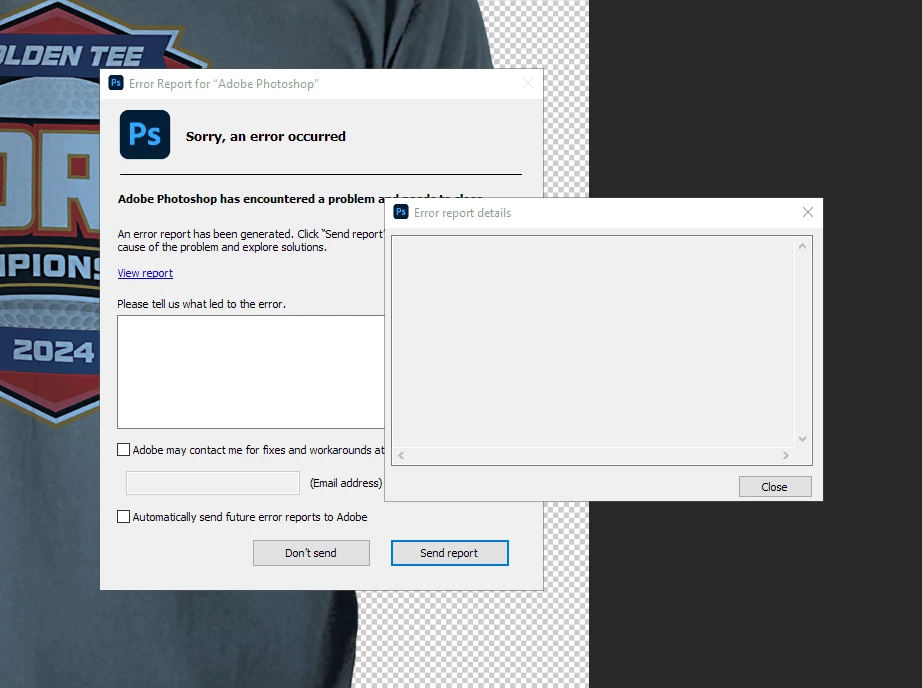 The only thing that has worked is me removing the current PS version and running version 25.0 in hopes the next version fixes this. The problem is, its hard to even explain or search on So i finally gave in and made this post showing a video of what happens when it occurs and you can see me trying to click and the menu's highlighting but i can't click on anything and when it does crash it shows an empty dialog box sending nothing to adobe when i push send crash report.