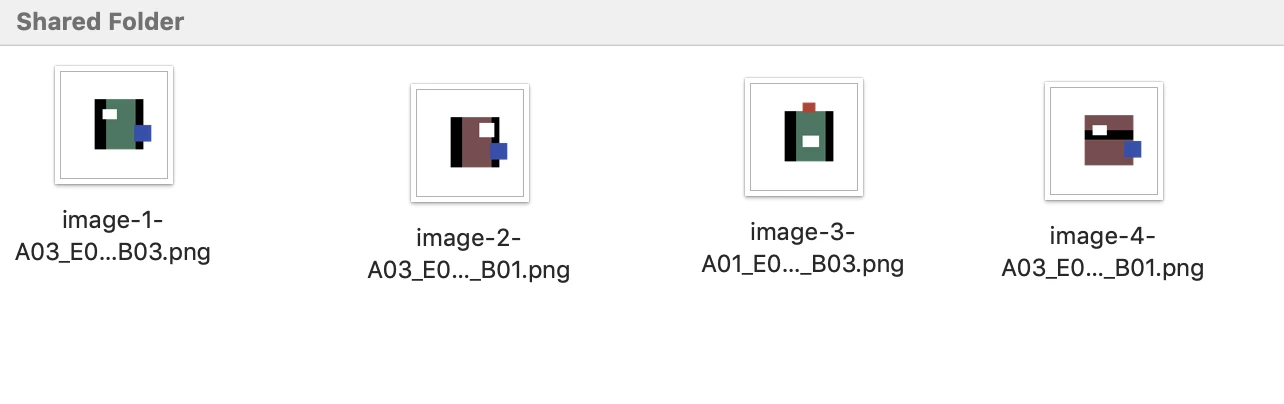 The image generation itself works as intended. It's the automated file naming for each generated image that I wish to change. By default, the images are saved as image-num.png, with "num" being a variable (as you can see in the code). I would like the file name to be something like image-num_layer1name_layer2name_layer3name.png. So for example, a generated image using the layers B01, P03, E02, and A03 would be named: image-248_B01_P03_E02_A03.png.