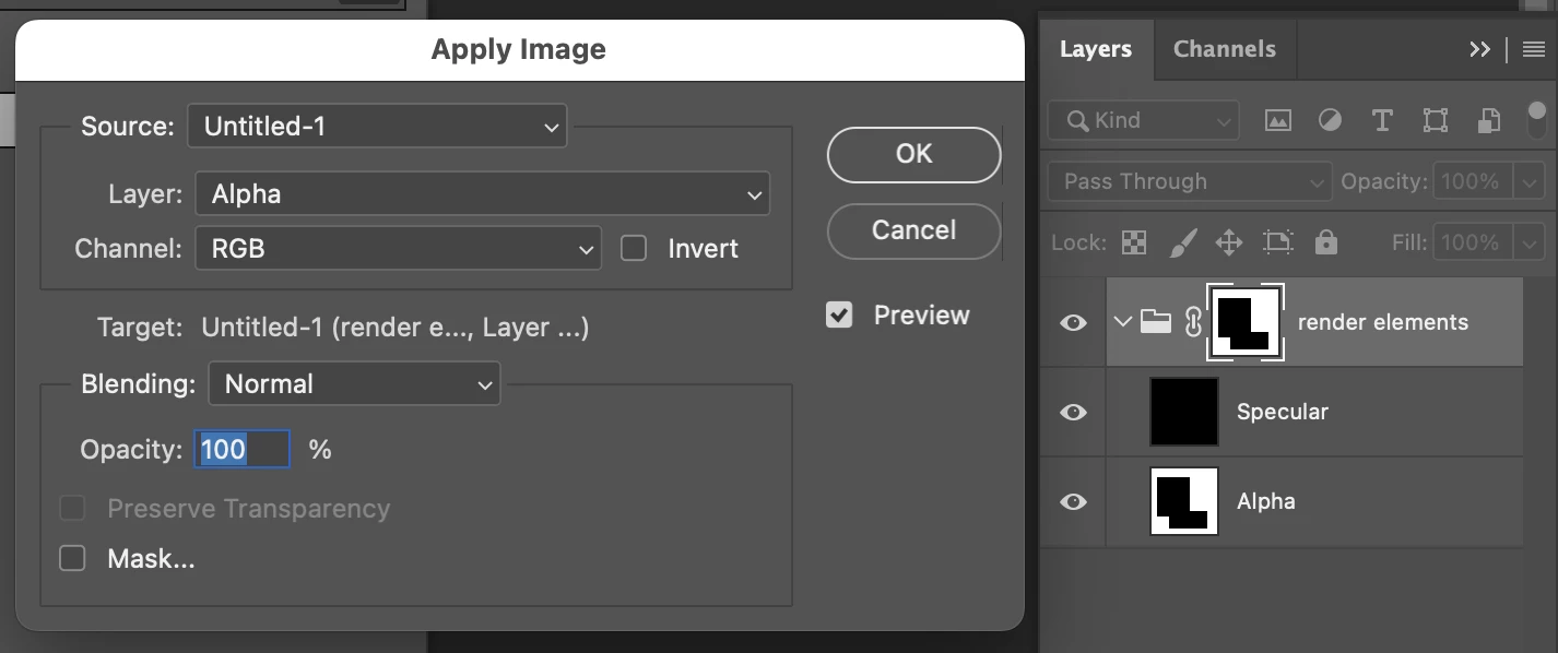 applyImageEvent("Alpha"); // string for the source layer name