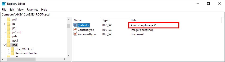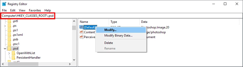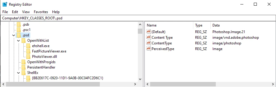 PSD file type cannot associate with a default program (Windows 10 Pro)