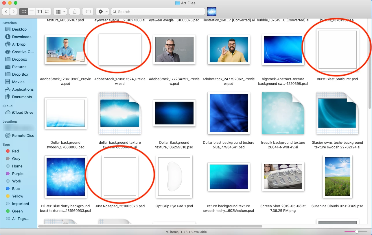 I'll search for images (show as icons option) in a folder on my desktop, and the PSD files previously had a nice preview so I could easily choose the file I want.