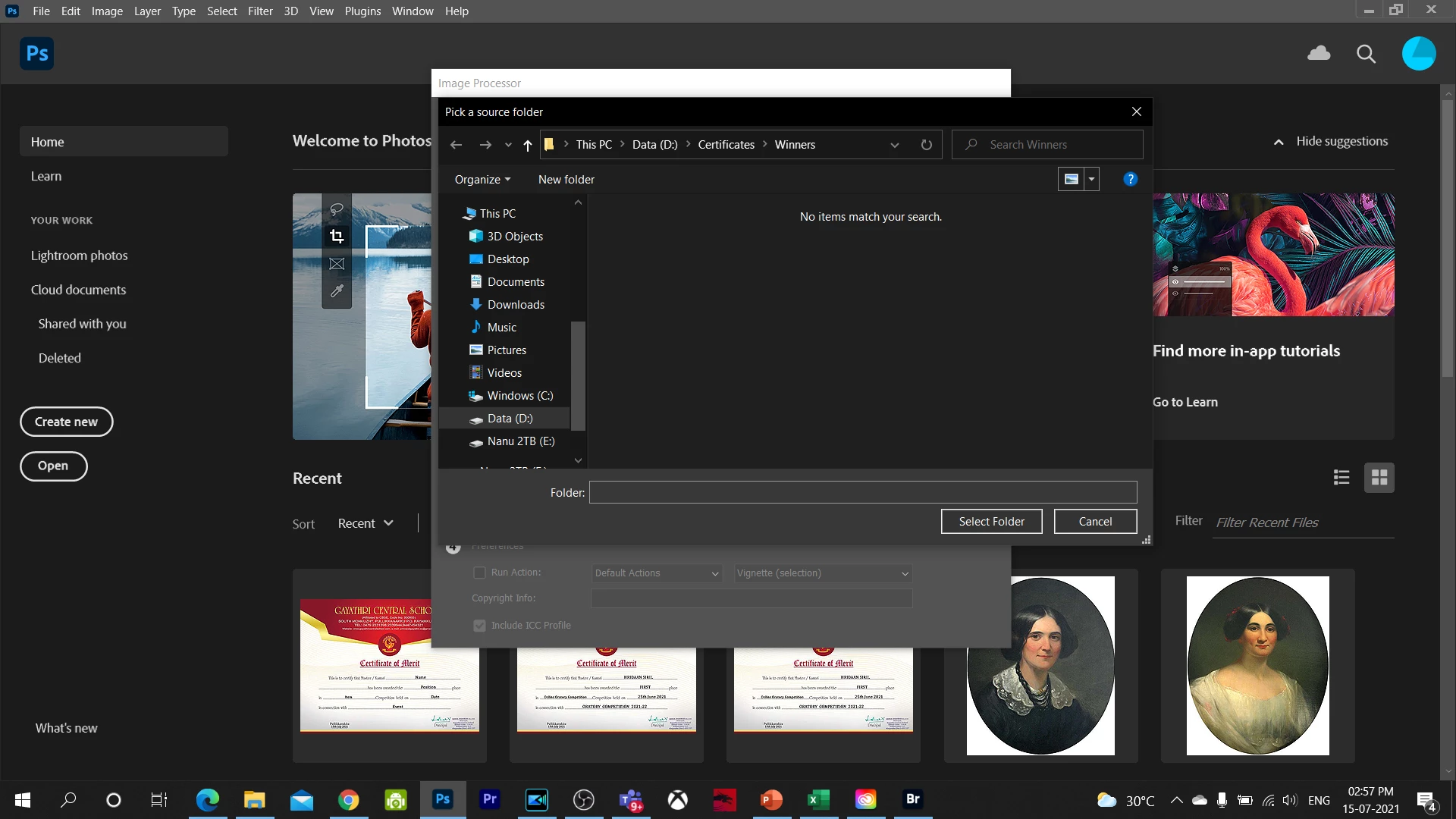 I want to convert some psd files to images using Image processor in photoshop but when i try to select files its says the folder is empty. Please help, i need to convert a lot of psd certificates into image files.