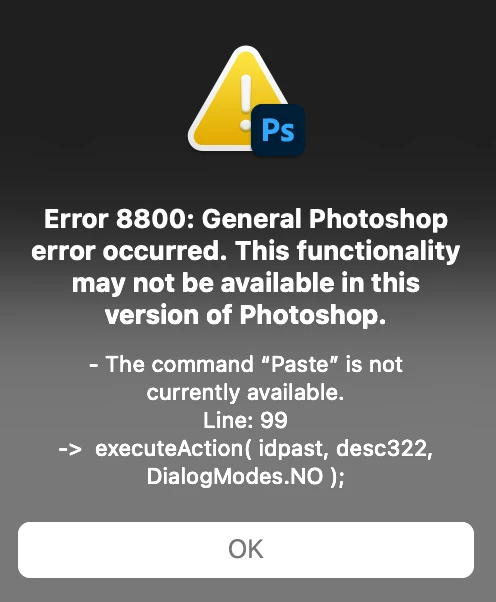 I tried in version 2021 and 2024 and didn't get that error, however I didn't get the masks either.