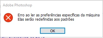 Quando inicio o Photoshop aparece a mensagem: erro ao ler as preferencias especificas da máquina. Como resolver?