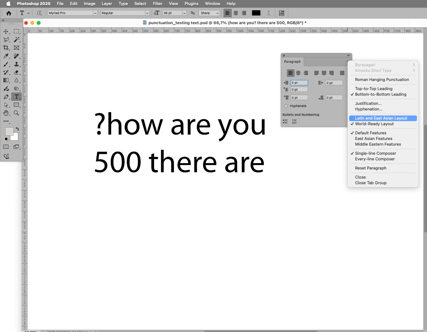 Punctuation jumps to beginning of sentence in photoshop 2025. Help?