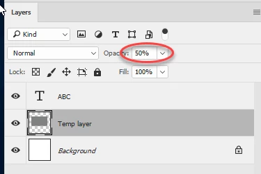 1. Add a temporary layer below the text