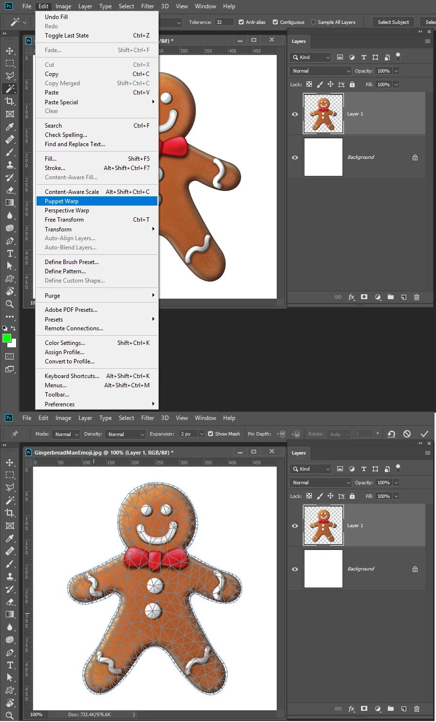 I try to use Puppet Warp but the 'mesh' does not appear. What can I do please?