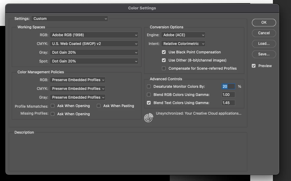 Also attached is the colorsettings. The issue was not fixed by changing to srgb, everything else is default.