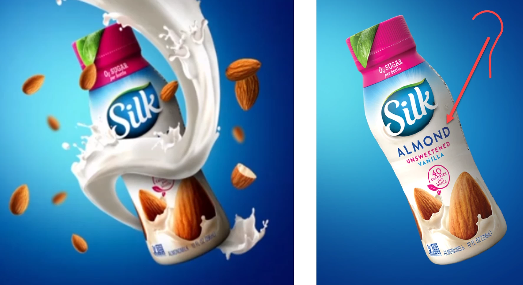 This is a tutorial. Milk splatter is hiding the information on the bottle about the content of the milk. Do you think it is a correct design? Becasuse at the selling point not only image should be attractive but also it should give all the information about the product. Becasuse nowadays people become health conscious as well.