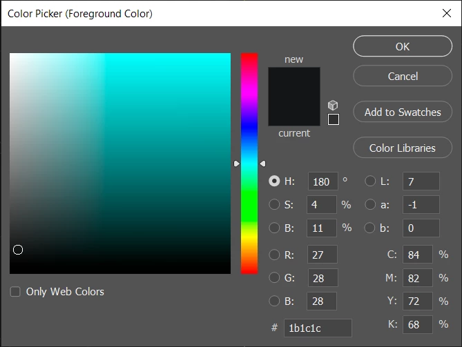 Then i went to my project and started doing my BG with said color, but there was something wrong the color on the 1st color picker was darker and on my project for some reasong was lighter so i went and opened the color picker on my project and this is how it looks.