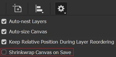 4. Uncheck Shrinkwrap Canvas On Save [figure b.]