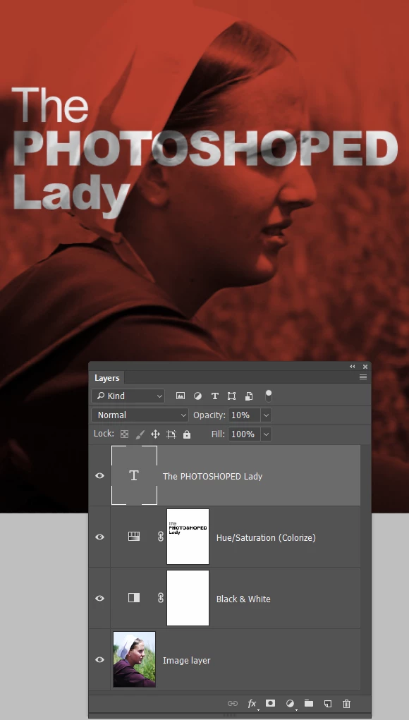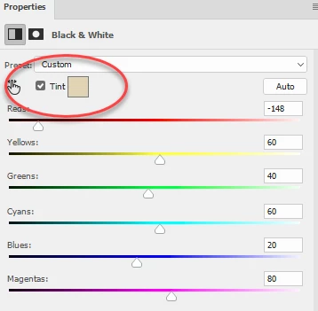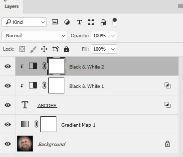 3. Finally I added a second B&W layer again clipped to the layer below and with a tint set