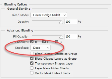 2. I clipped a black and white adjustment layer to the text and set the blending mode to Liner Dodge (Add) . I also set the blending options of the black and white adjustment to "Knockout =Deep" and the Text layer I unchecked Blend Clipped layers as a group