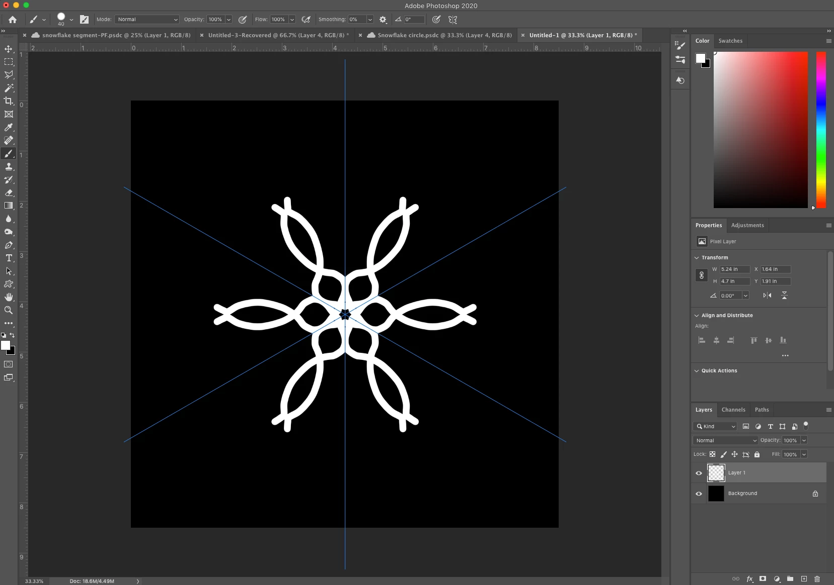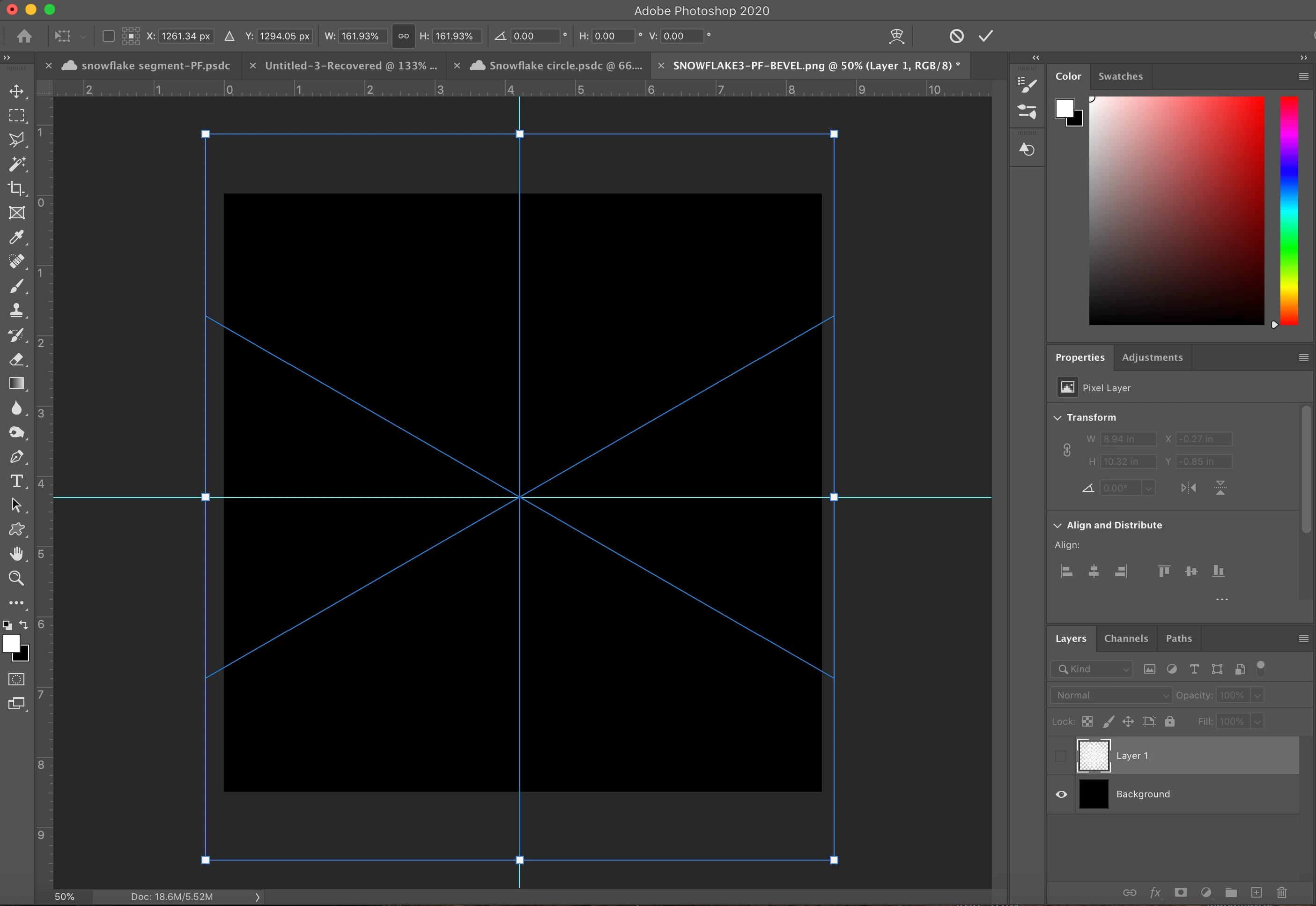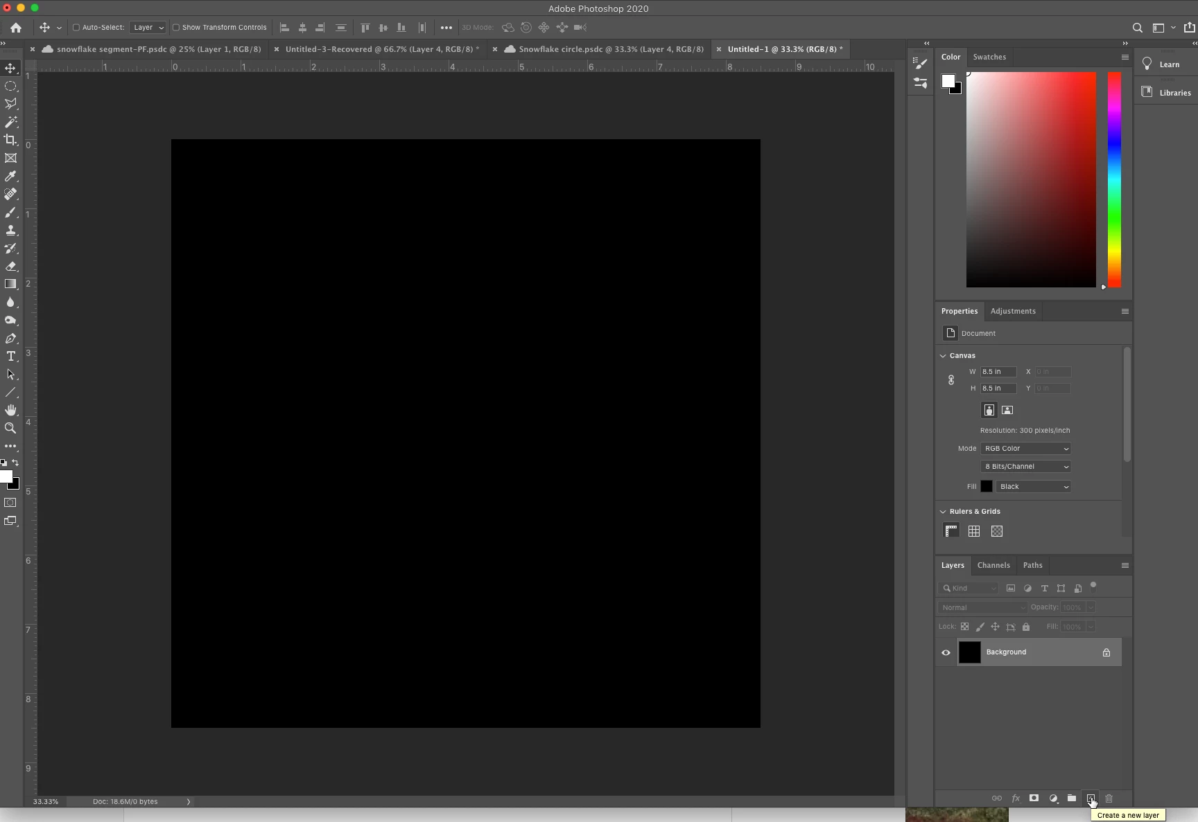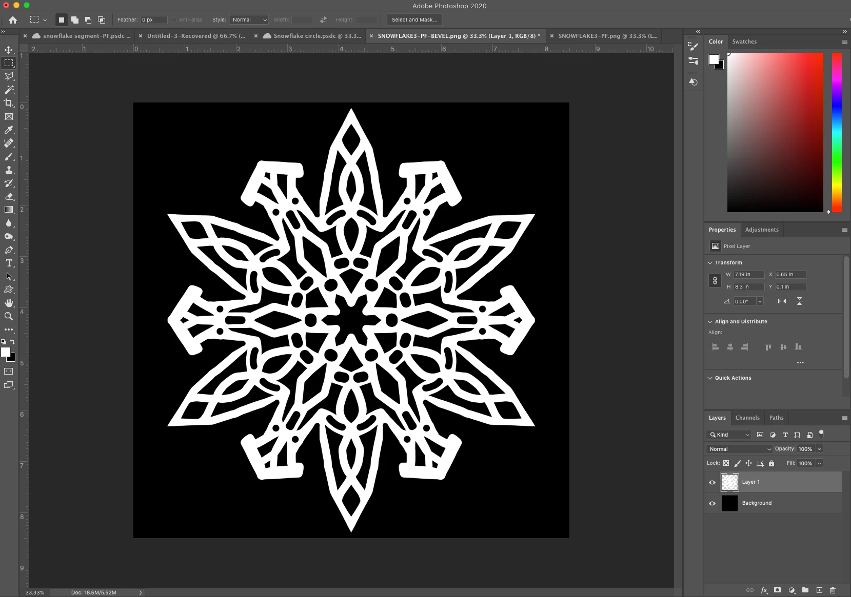 - If you want to add snowflakes to other projects you are working on, you can hide the black background layer and save the snowflake file as a PNG file. This will retain the transparency of the background so that you can place the snowflake over top of any design or photo without worrying about having a black square around it