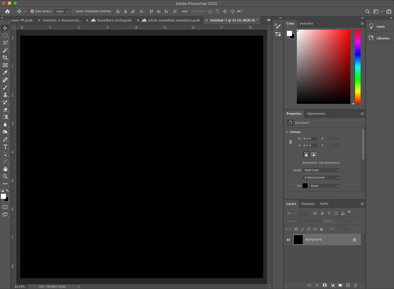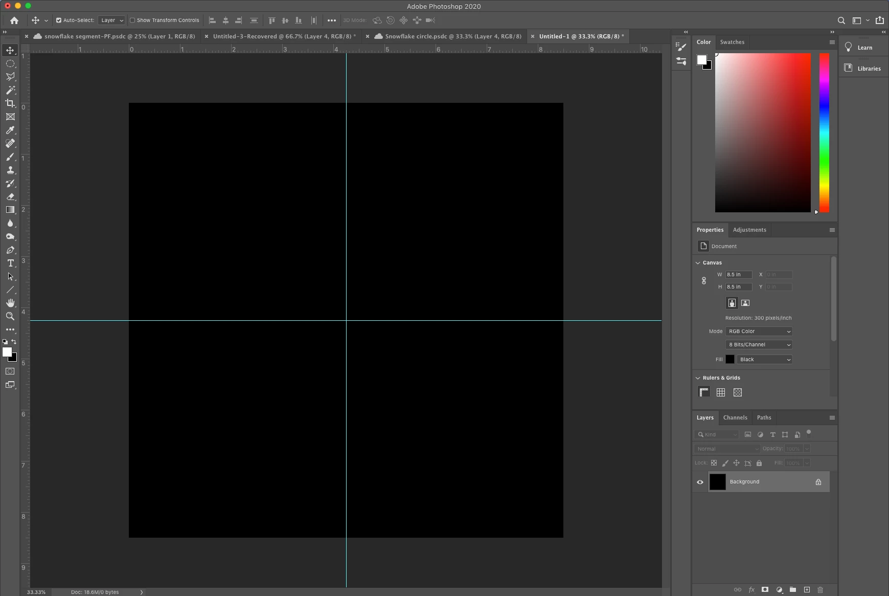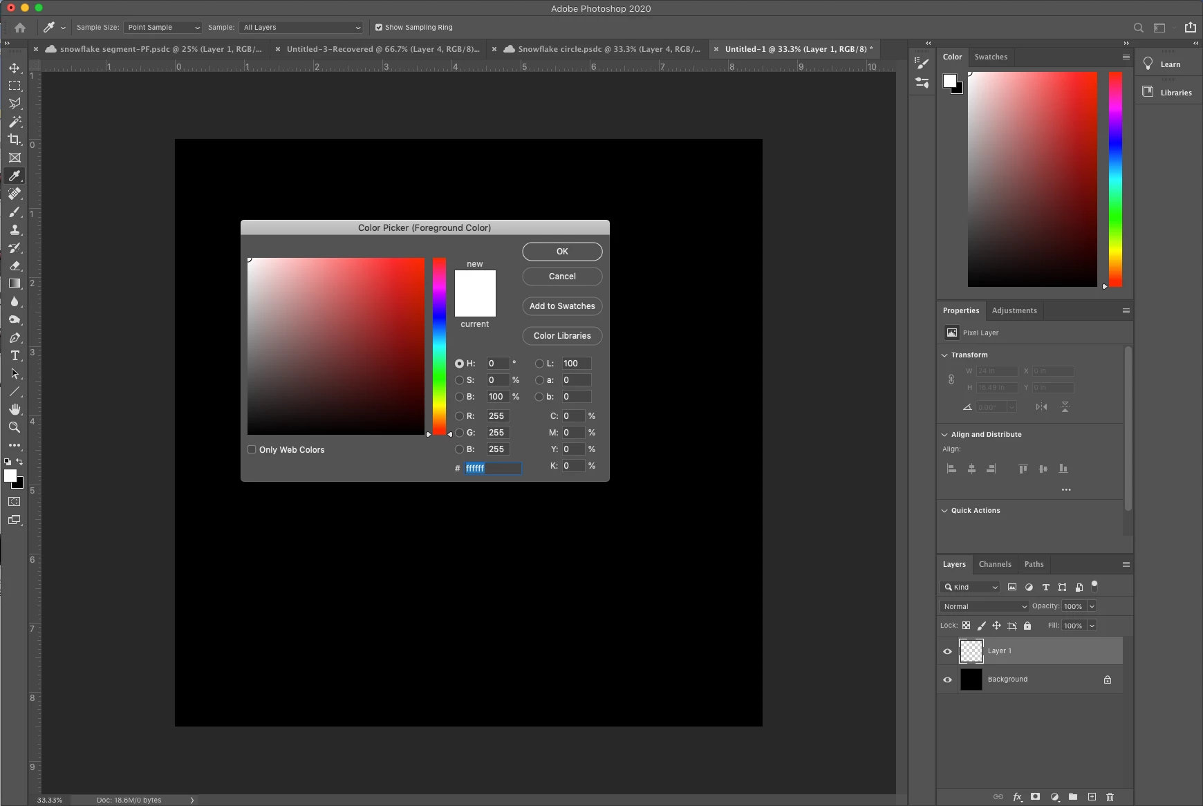 - If you want to add snowflakes to other projects you are working on, you can hide the black background layer and save the snowflake file as a PNG file. This will retain the transparency of the background so that you can place the snowflake over top of any design or photo without worrying about having a black square around it