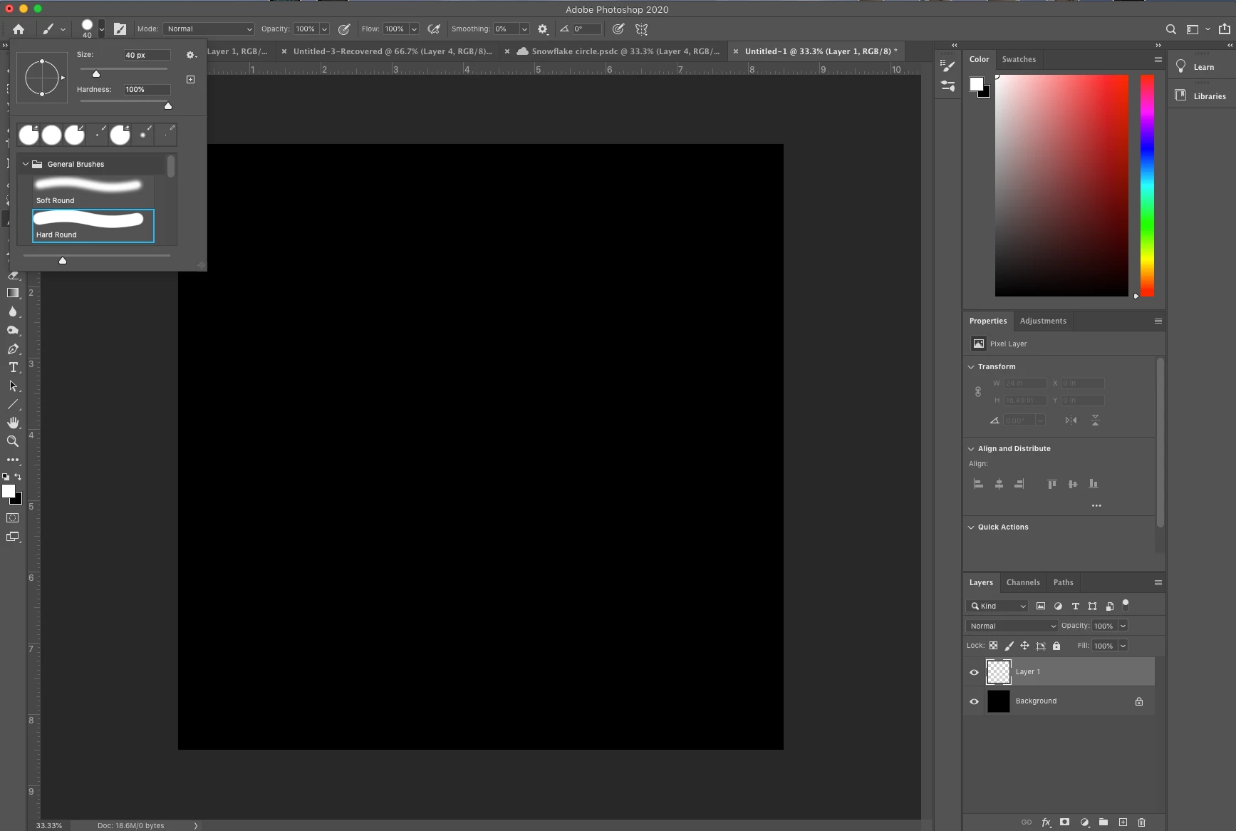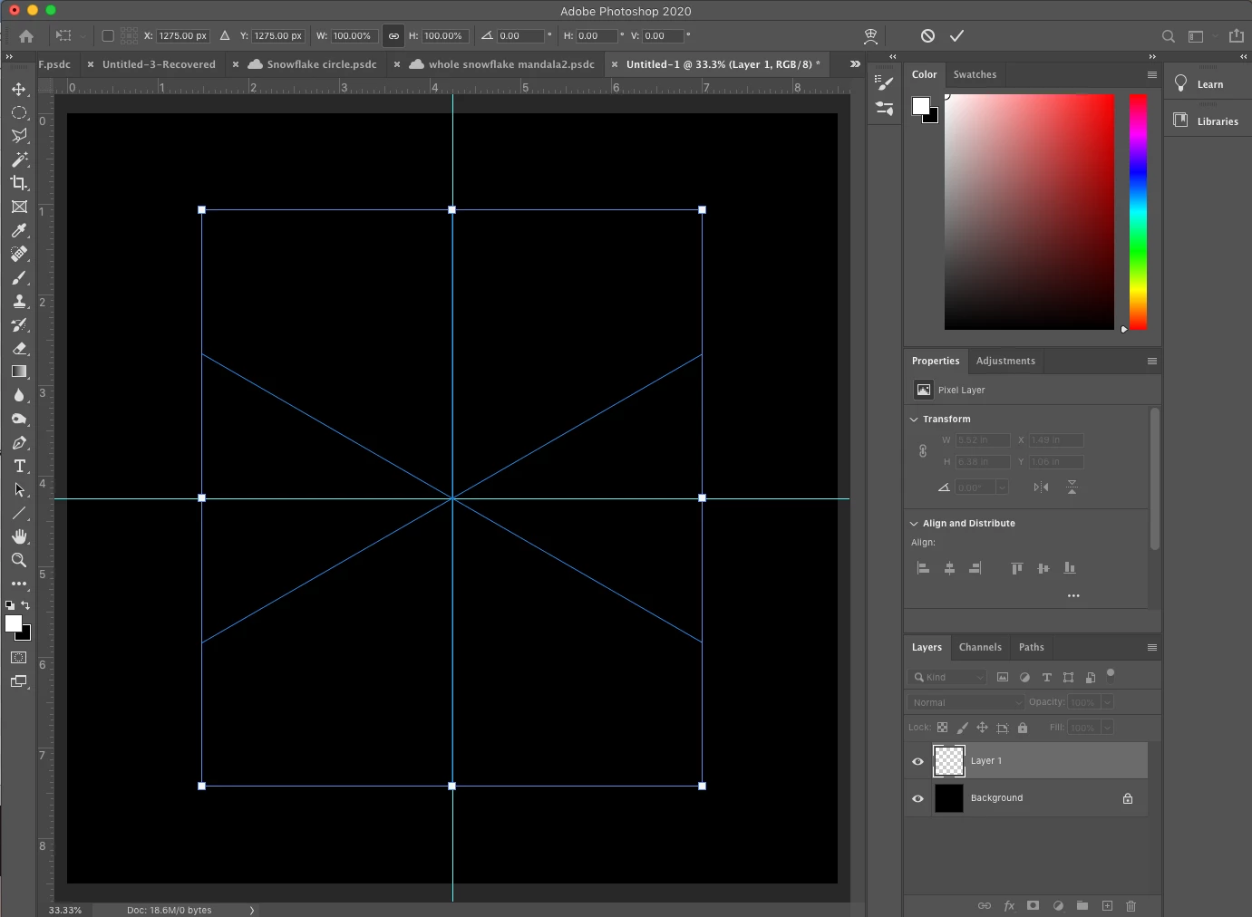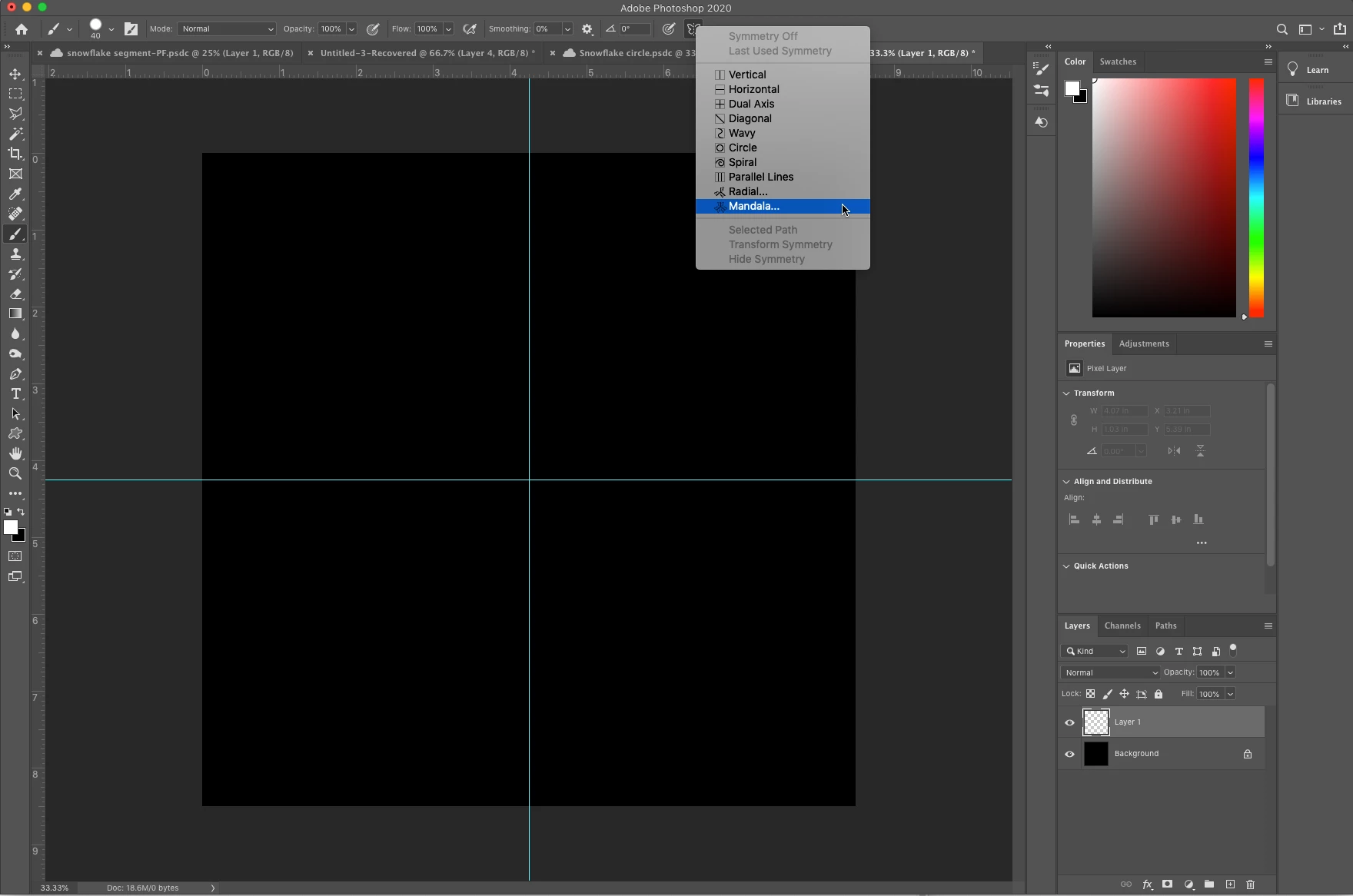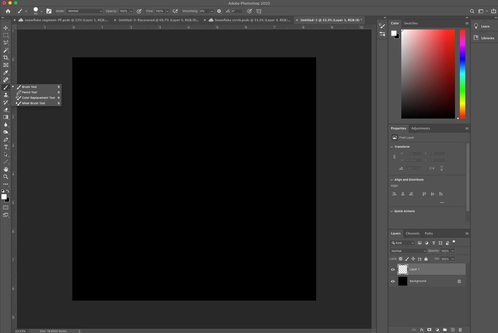 - If you want to add snowflakes to other projects you are working on, you can hide the black background layer and save the snowflake file as a PNG file. This will retain the transparency of the background so that you can place the snowflake over top of any design or photo without worrying about having a black square around it