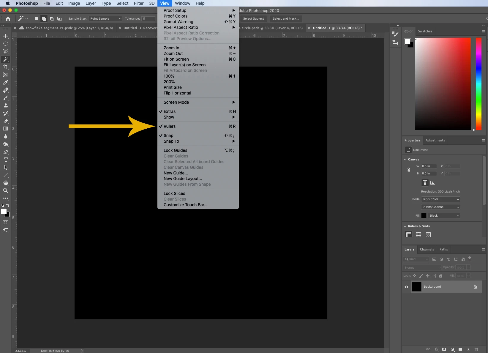 - If your rulers are not visible, select view and tap rulers to turn them on
