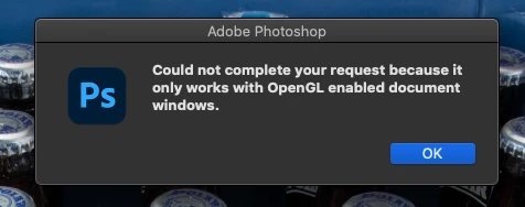 Sometimes having many document windows open can cause the OpenGL error. Just use one window.