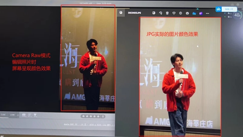 左边在PS中打开RAW格式的照片文件,屏幕呈现色彩明显与右边JPG图片显示的色彩不同。已尝试调整Camera Raw模式的色彩,但无用。也尝试过卸载PS重新安装+安装最新版Camera Raw插件,都没用。