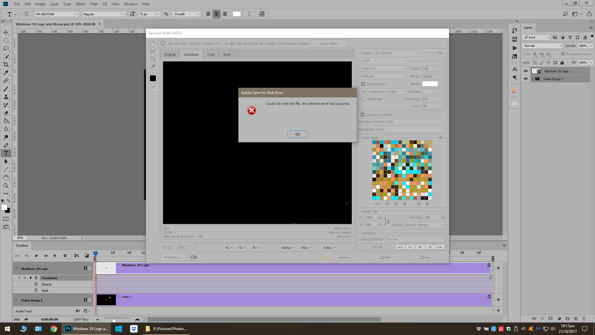 RE: Adobe Photoshop CC (2018) Save Gif for Web Error.