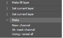 I have a variety of actions that use Make -> New: channel At: mask channel Using: reveal all