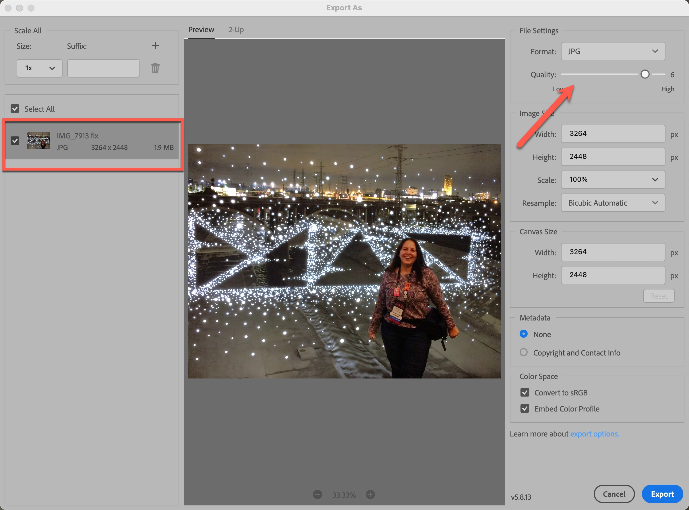 #3 Most frustrating of all: When I save to jpeg it no longer gives a file size when you move the slider to selected from small to large. You just have to guess,usually to large or too small, which means doing it again and try to remember what what number you picked last time. The message reads "Preview and file sizes are only available for 8-bit images. More previewing options available in Save for Web. I cannot see the file size until I go back to the folder it was saved to to check it. This is true for jpeg (and also for png). This is just nuts. When did this start and what are the options for a better workflow? Thanks, Paul