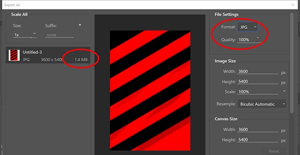 I am saving JPEG at 3600x5400 pixels, at Max quality, and typically these are 10-12MB.