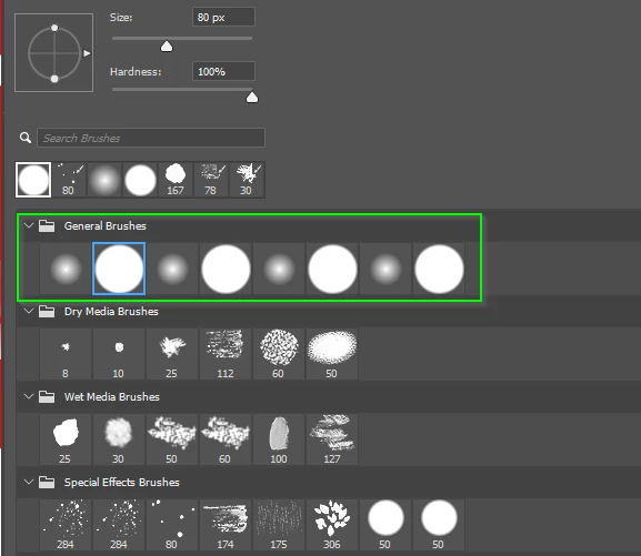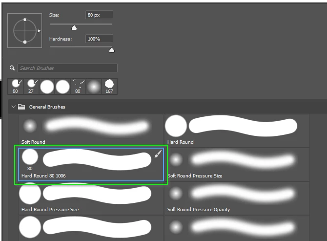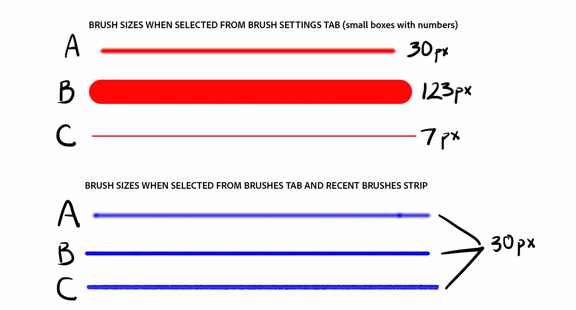 Recently used brushes strip: Selecting a previous brush doesn't revert it to its previous tip size