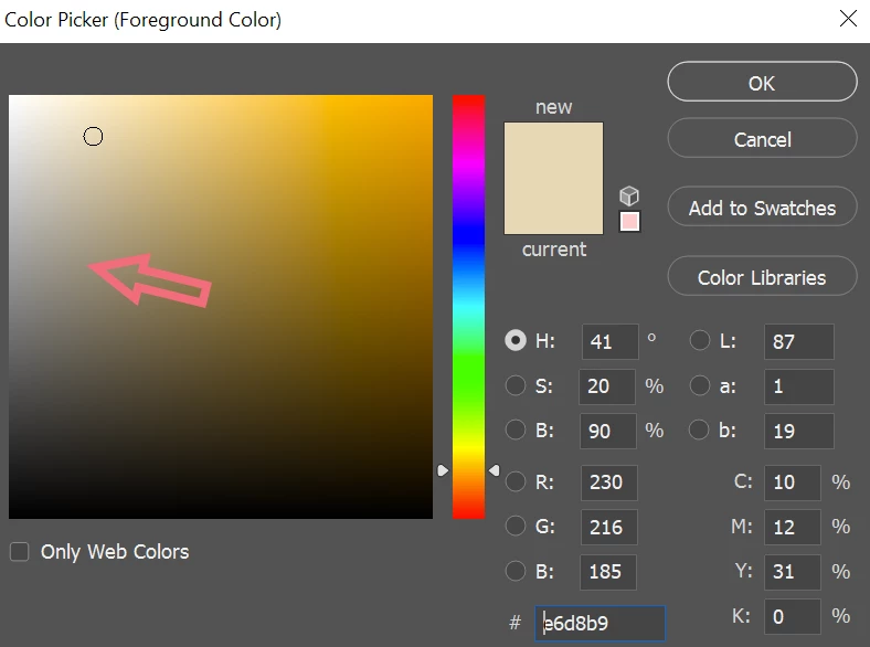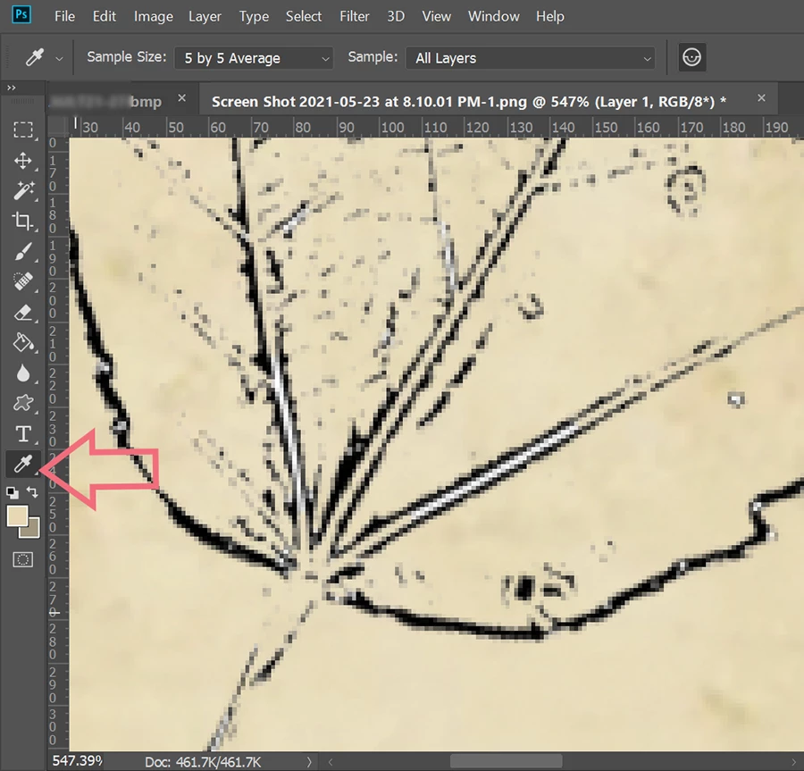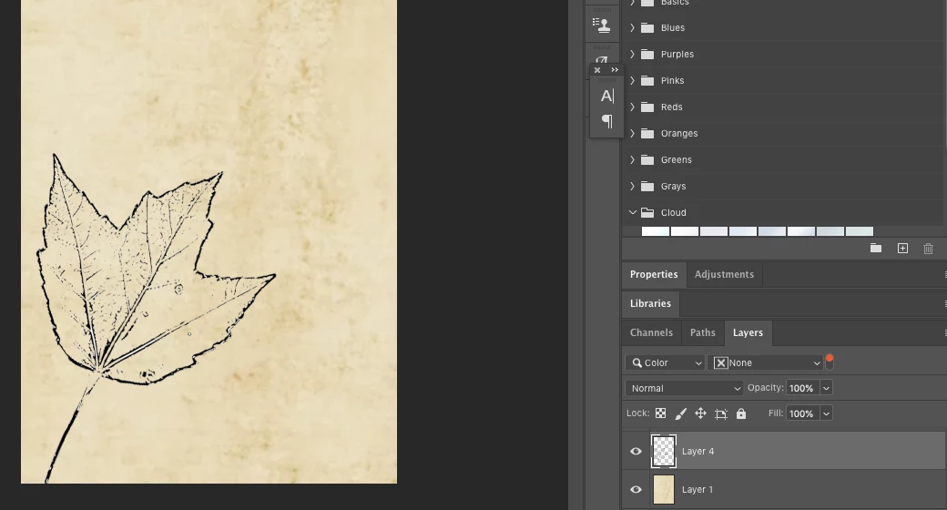 I have a PNG photo of the outline of a leaf (laYer 4). I added onto top of a parchment background layer (layer 1) in photoshop. I want to recolor the leaf a shade similar to the background but slightly darker. I've tried adding an adjustment layer to the leaf layer and have played around with the hue/saturation or Selective Color adjustments. But when using these tools I need to adjust several different parameters to find the color I want. I'm not a colorist and I've spent 30 minutes doing this by trial and error and am not getting a color anywhere near the shade of the background. there must be an easier way where I can select the color or simply enter the RGB or CMYK color to recolor the black. Any ideas?
