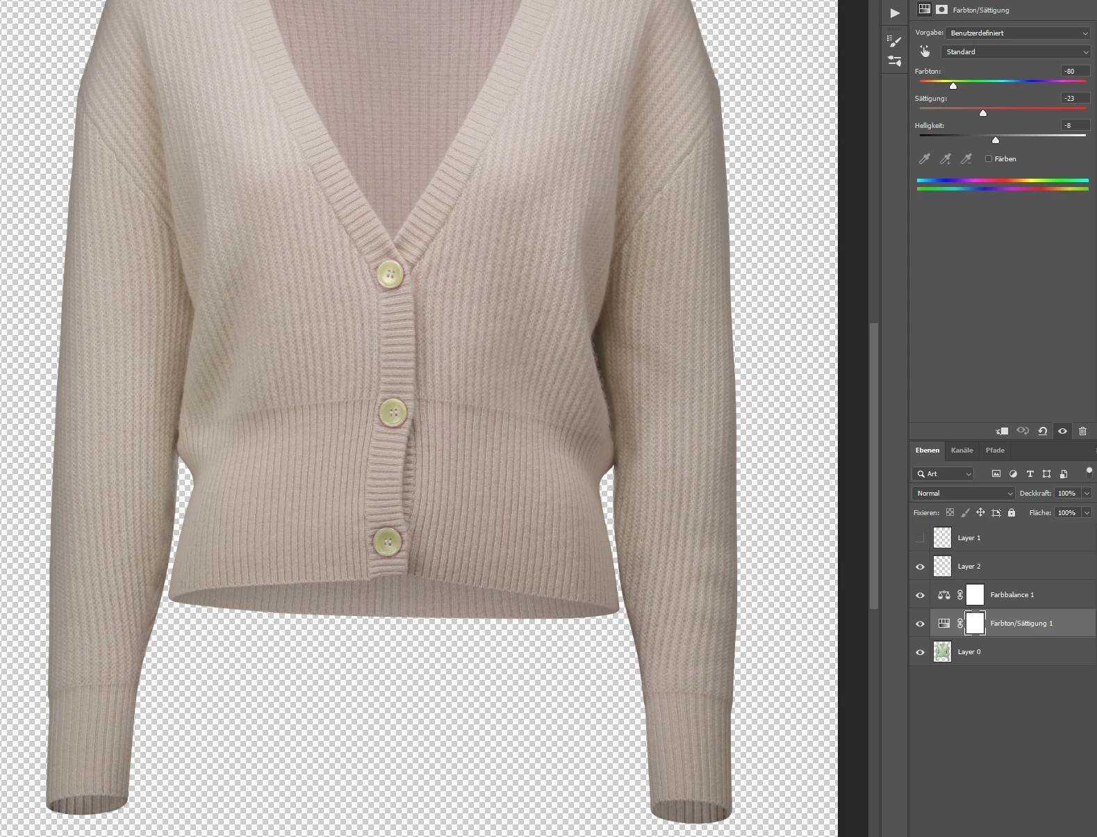 i would like to recolor a jumper from one color into another color --> light green into scin color. This works just fine for the majority of the article. But I have a purple shimmer around the buttons. How can i avoid this. Are there any tricks or tipps how i can do this. (The color of the button is not important since it will be put onto a seperate layer)