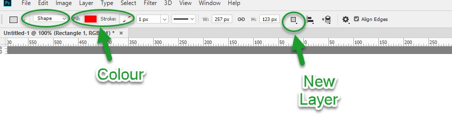 Help!  I'm a novice but have used this tool many times.  However today, the Rectangle tool (line) works but does NOT create a new layer, so I cannot move it.  Also no color pick box appears.  What setting have a inadvertantly changed?