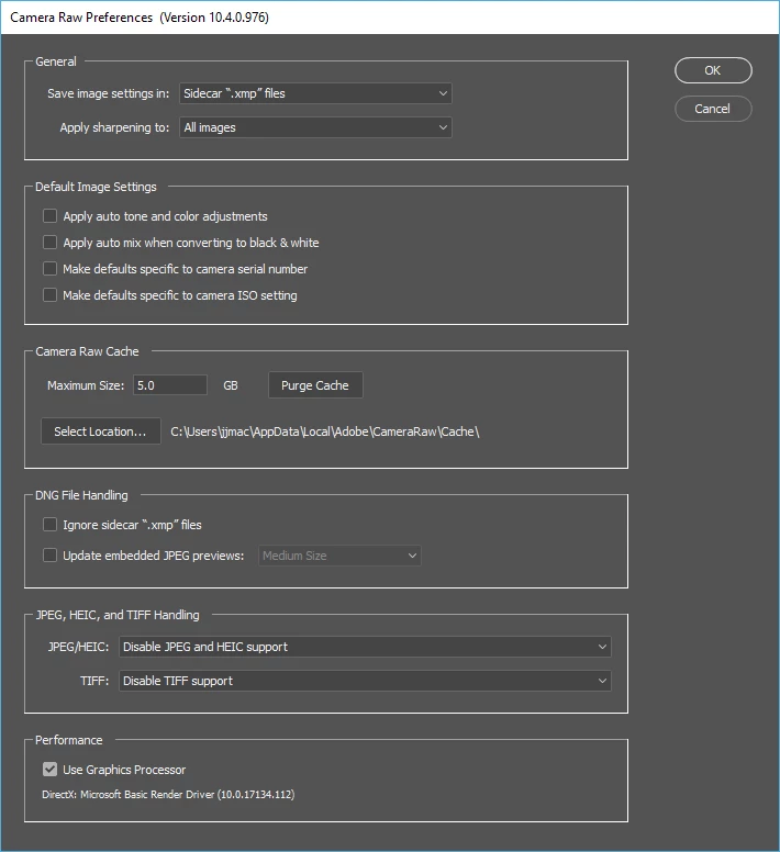 Even with GPU performance unchecked/off, I still receive the error. It doesn't seem to be affecting the performance of PS or Camera RAW 10.4, but the error is there nonetheless.