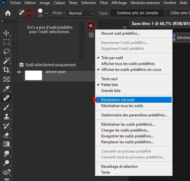 J'ai créé un outil prédéfini mais lorsque je change l'épaisseur il repasse en "Créer une texture".