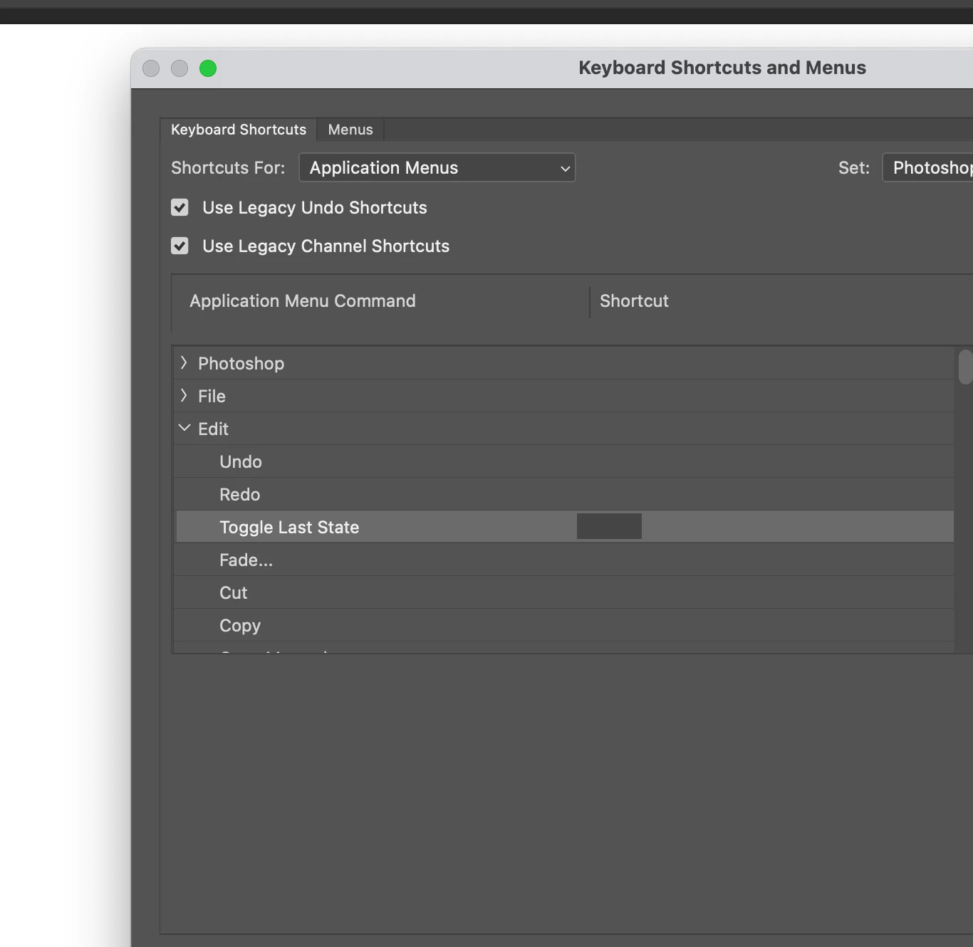 There was no "Toggle Last State" when we had the old Undo shortcuts. What happens if you uncheck "Use Legacy Undo Shortcuts"?