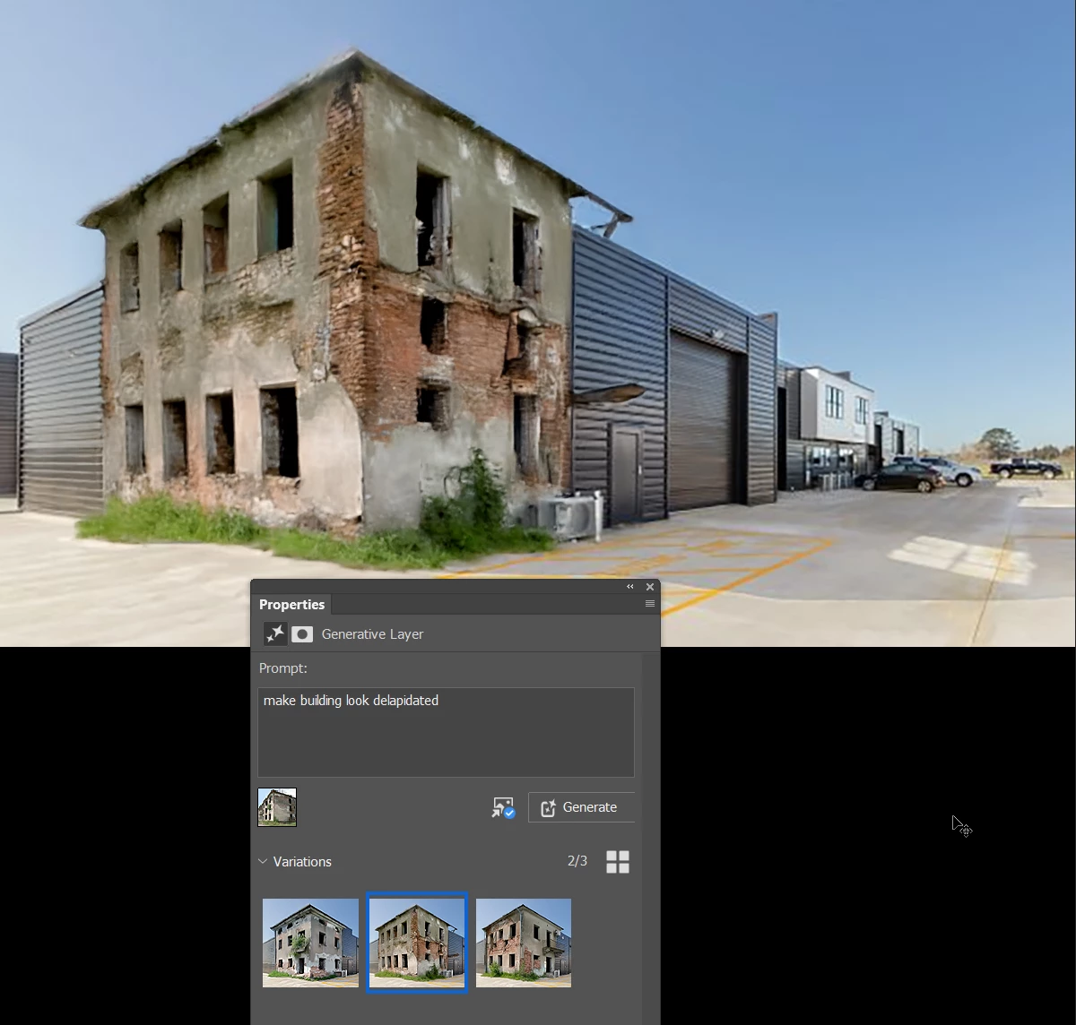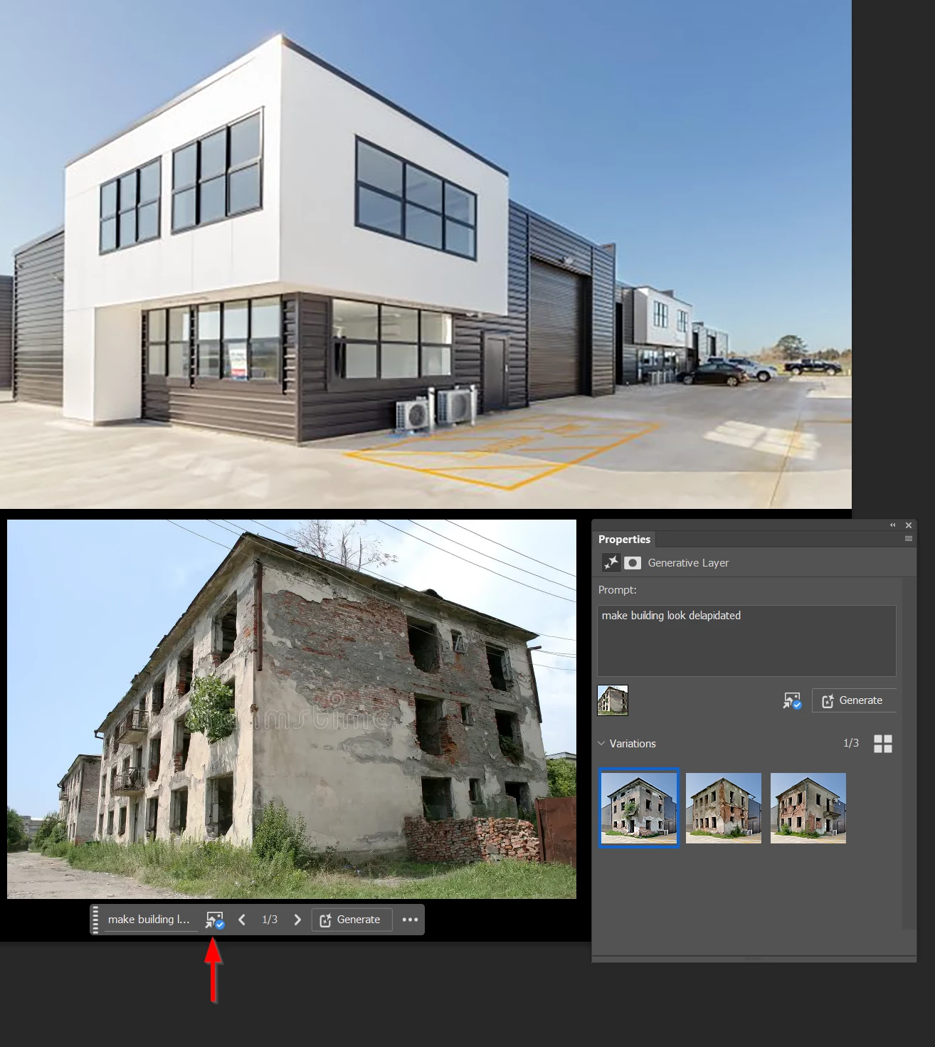 I have the latest version of Photoshop. I would like to use AI in the program to change an existing building, for example to make it older. Is that possible? It seems as if AI is replacing rather than remaking it.