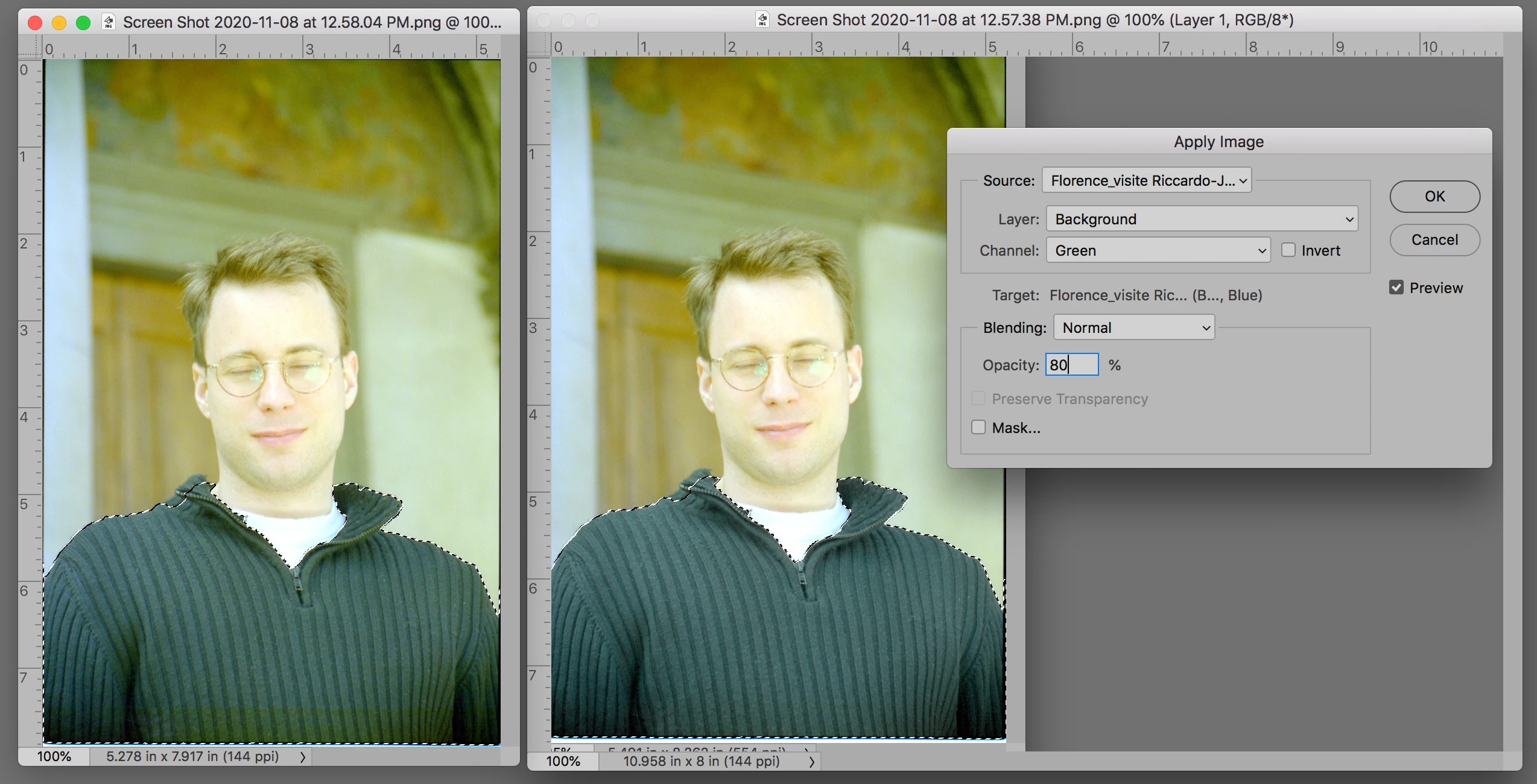 Once ok’d you are free to darken the shirt if desired. I chose not to change it since the shift in the Yellow did not cause a significant shift in color in what is essentially, a snapshot. I also see an overall yellow cast in the original shirt which this technique corrects.