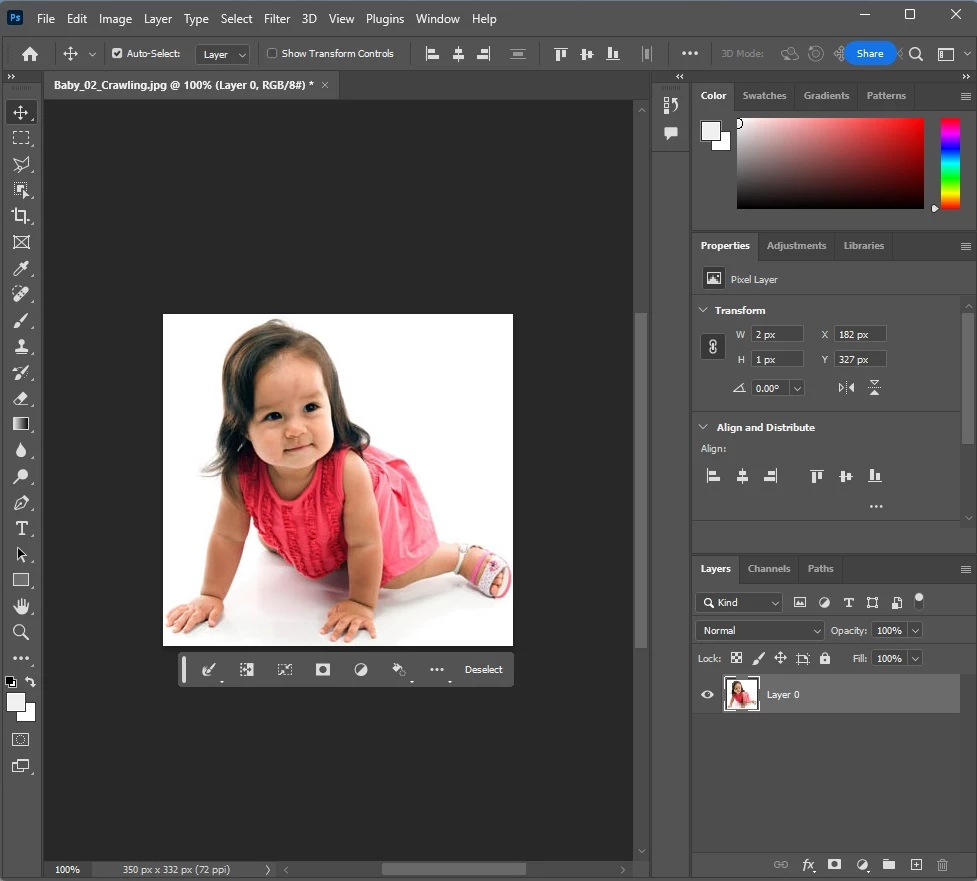 Even when I open an image with a well-defined contrast between subject and background, the remove background tool makes the entire image transparent.