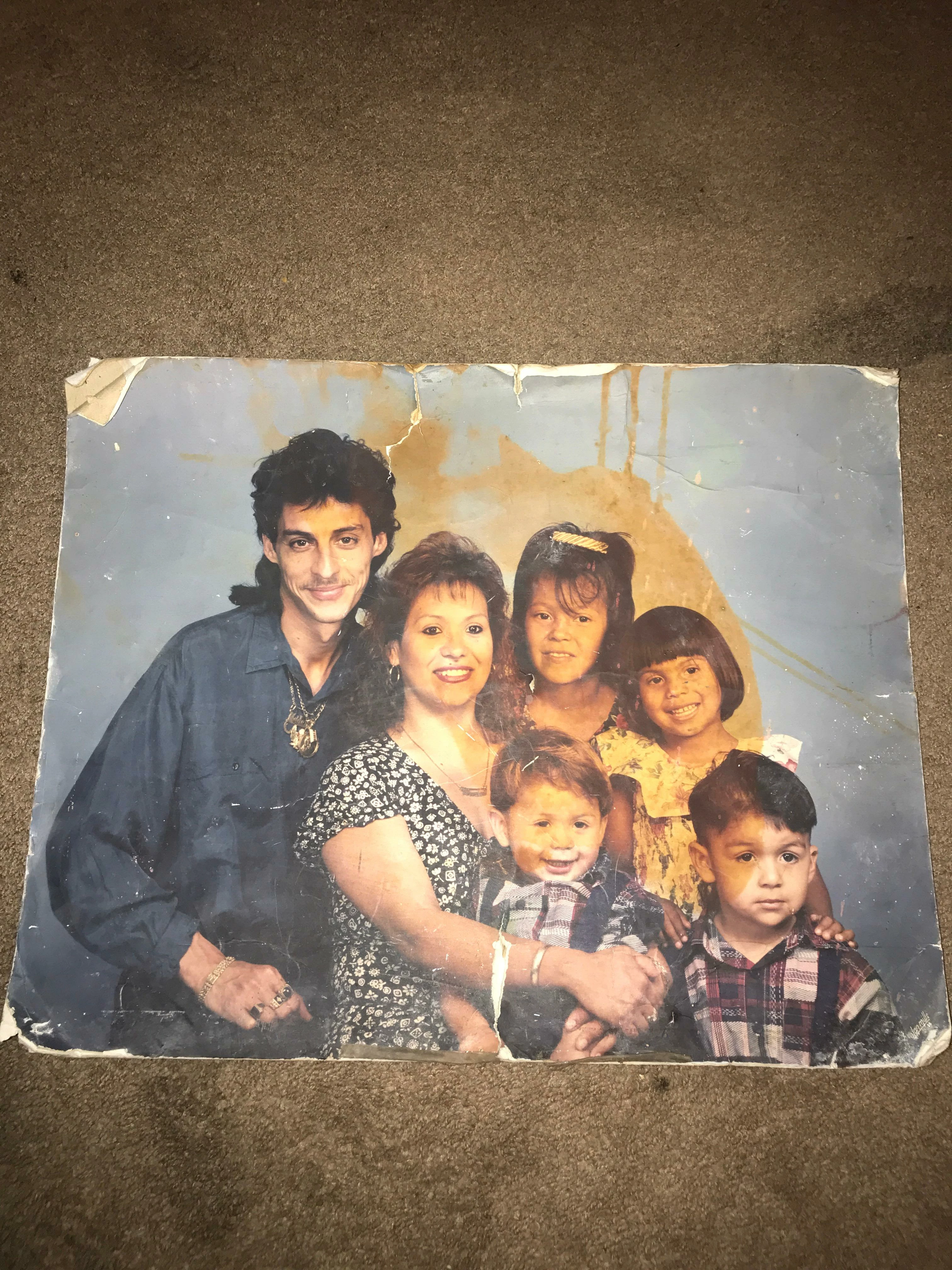 This photo really poses a challenge! Entire faces are covered with this stain! Any suggestions for removal of the stain?