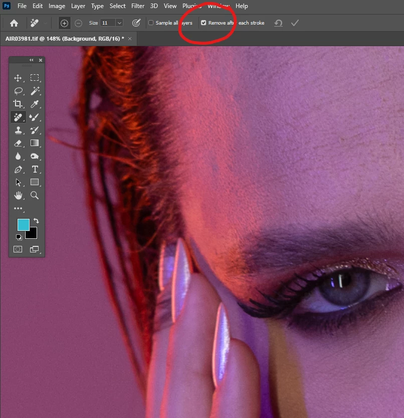 I have encountered a unusual issue with the Remove Tool in Photoshop since version 25.0. This problem did not exist in Photoshop 24, and despite reinstalling all Adobe apps, the issue persists.