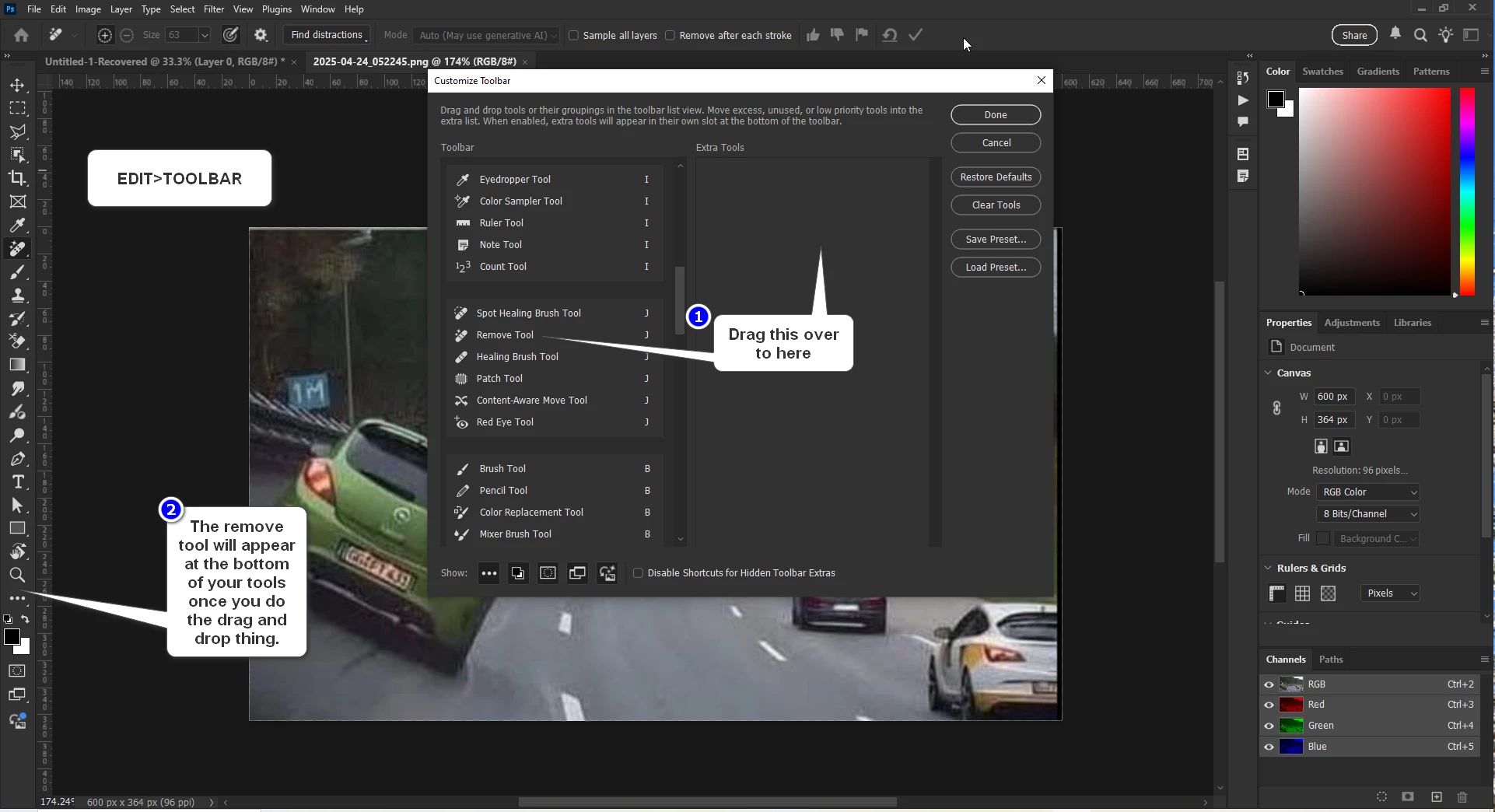 Remove tool not showing