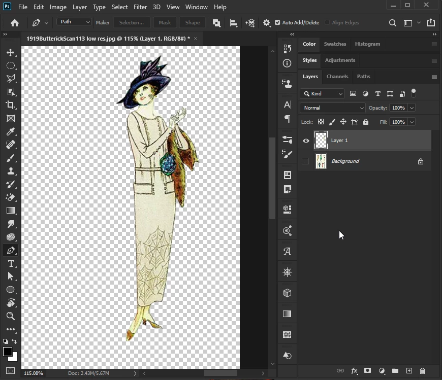 I'm trying to isolate each of the figures of the ladies here, and to save each one as a PNG so I can use them in a digital collage. I've tried different methods (magic wand, quick selection, select subject) and I still haven't got it down pat. I've even had difficult saving it as a PNG (the option isn't showing up in the "save as" menu).