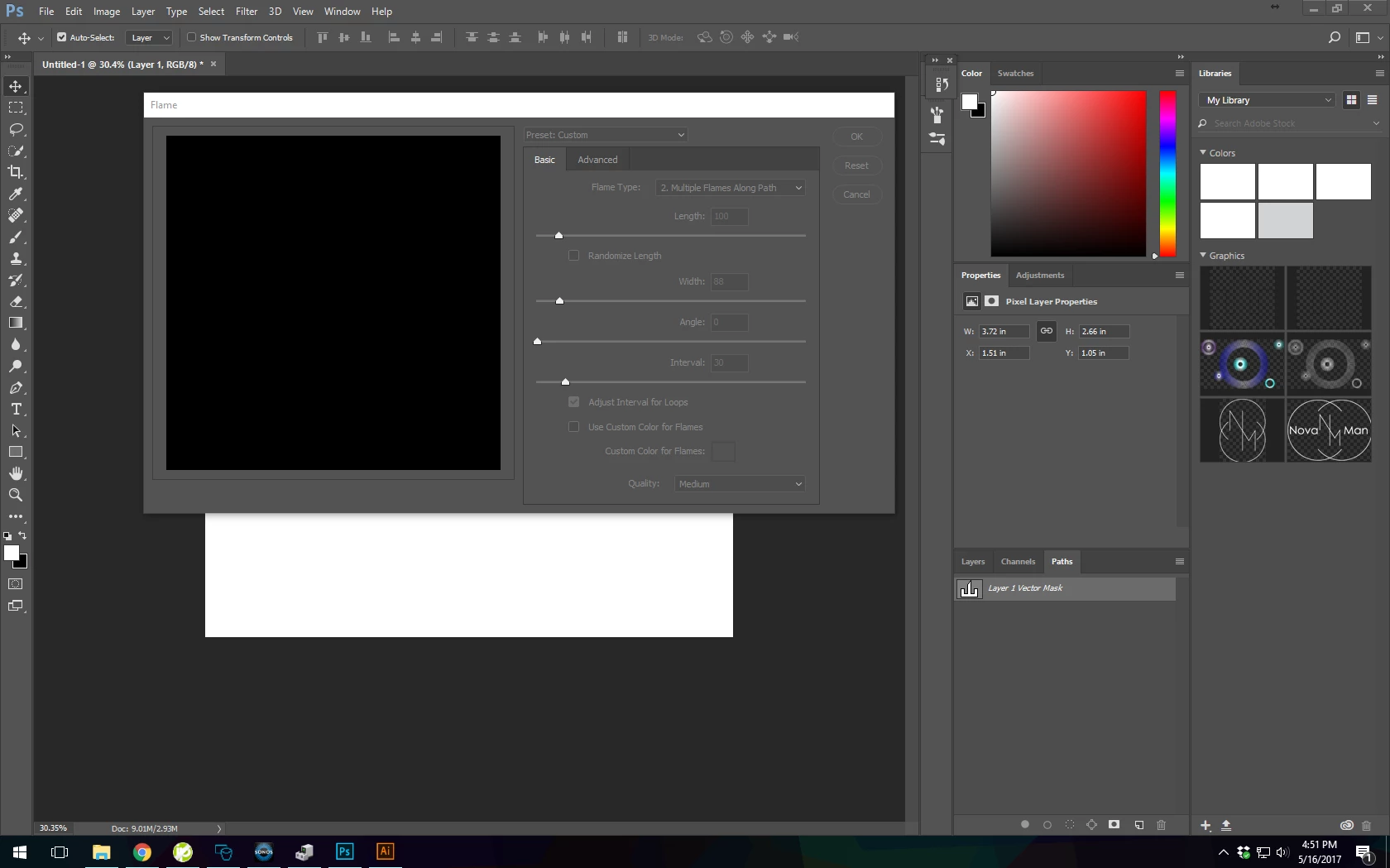I am trying to render a flame along a path I  imported from illustrator and am struggling- the tool renders the flame as a fill for the shape, not as an outline like i want it. How ould I go about taking a path from illustrator and using photoshop to render a flame along it?